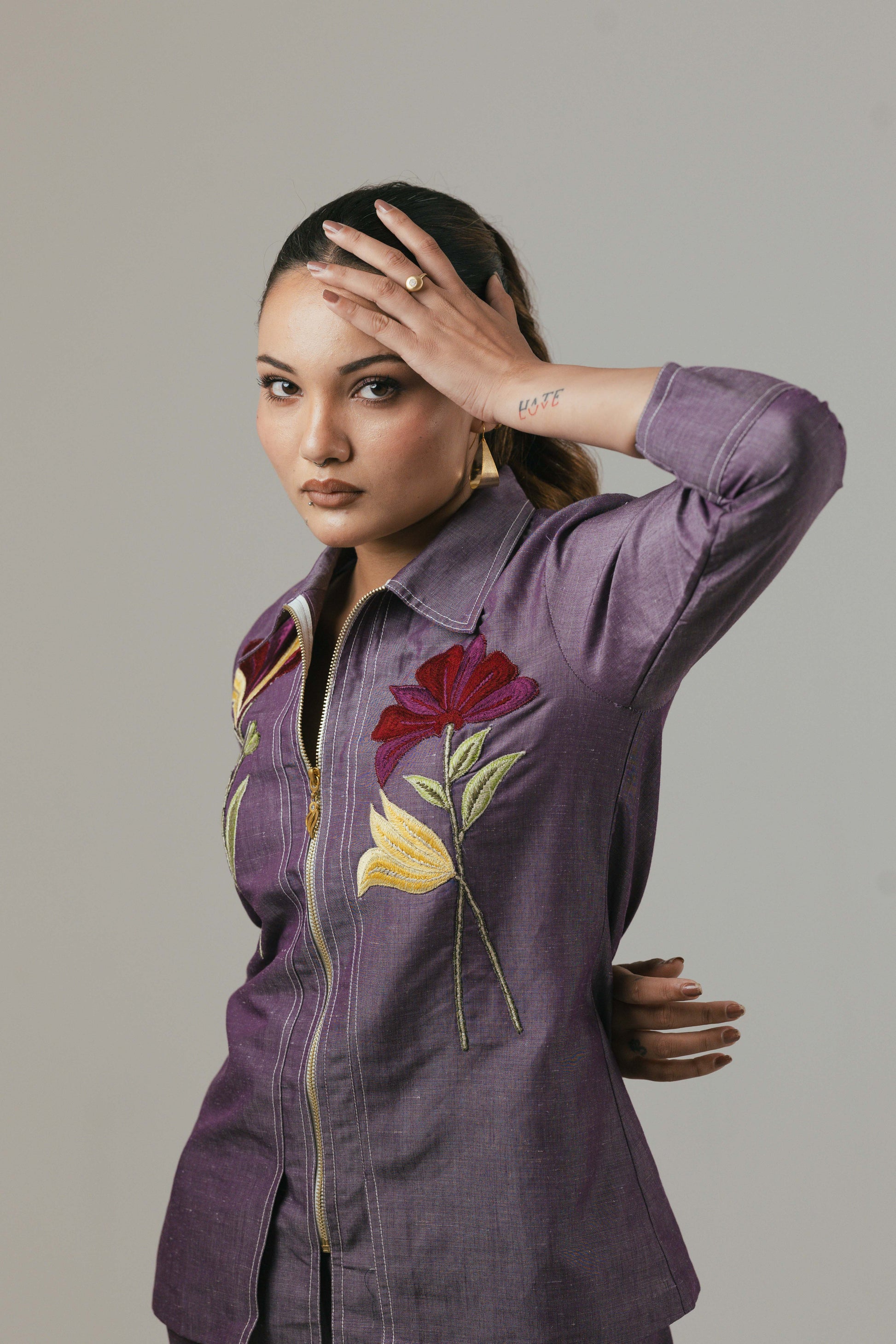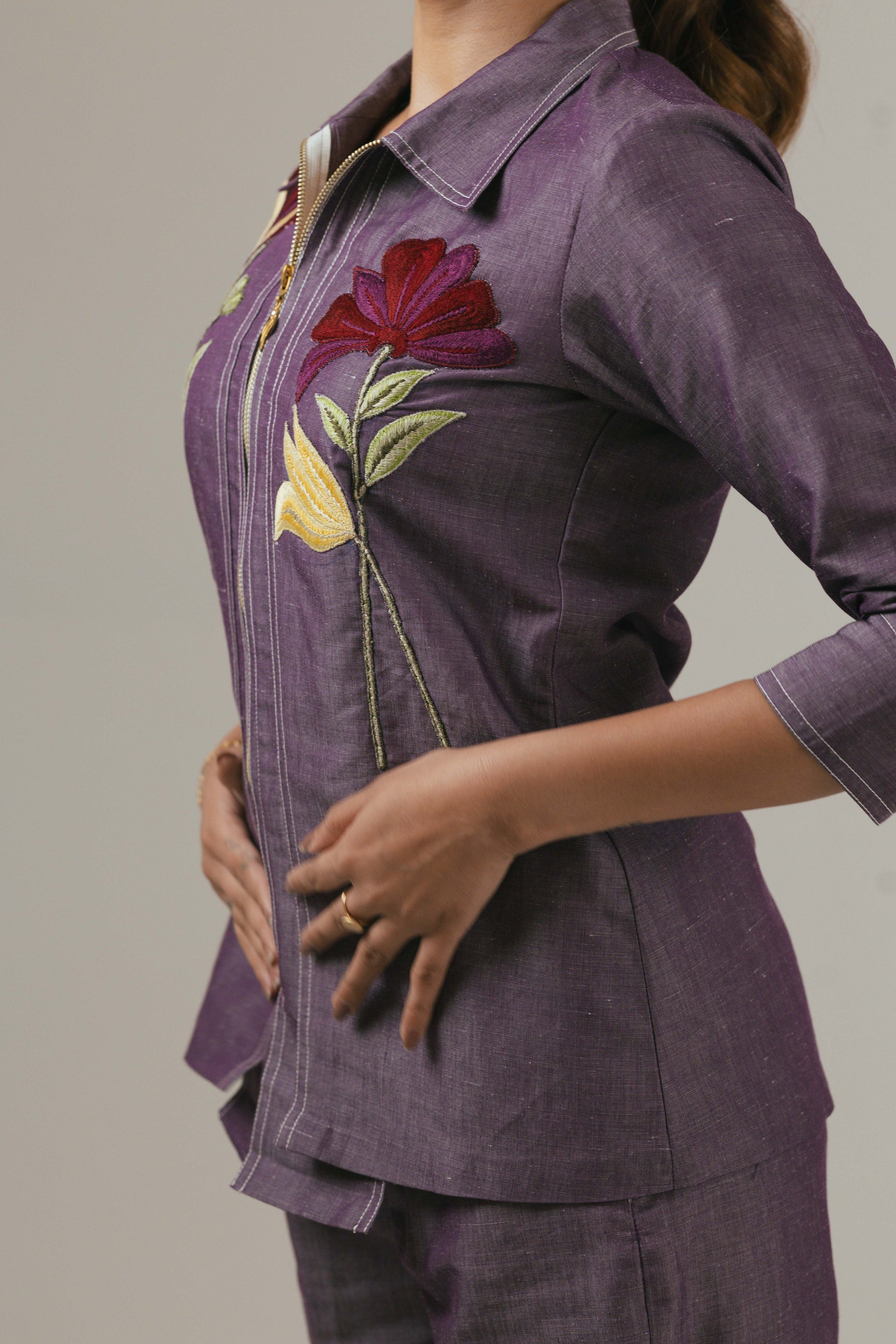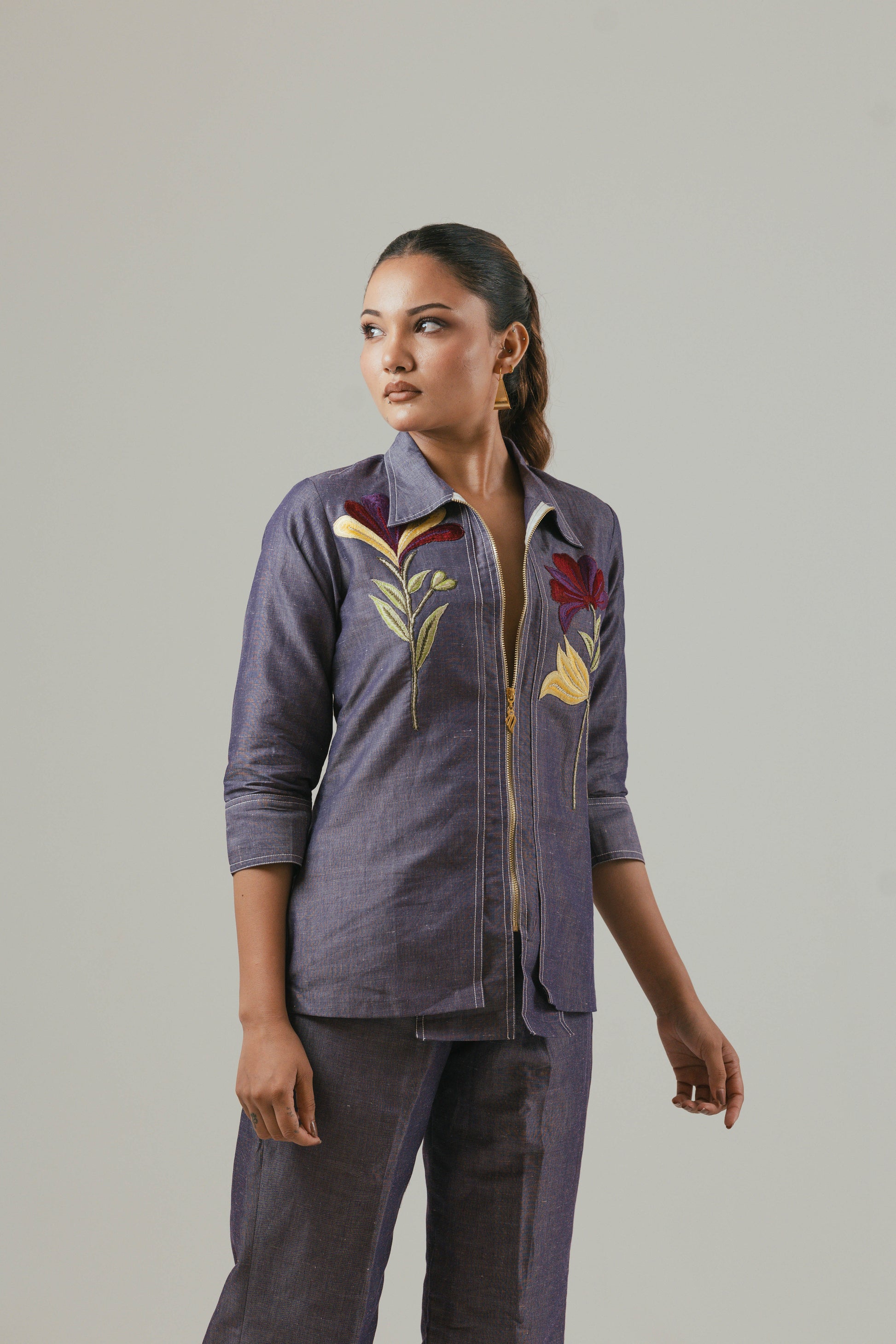 Step into effortless elegance with this 2-piece co-ord set crafted from premium denim linen fabric. The set features a stylish embroidered shirt top (length 27 inches), adorned with delicate floral motifs that add a touch of femininity to its structured silhouette. Paired with comfortable straight-fit pants (length 41 inches), this outfit strikes the perfect balance between sophisticated charm and everyday ease. Ideal for brunches, office chic, or evening outings, this versatile ensemble is a wardrobe must-have.
